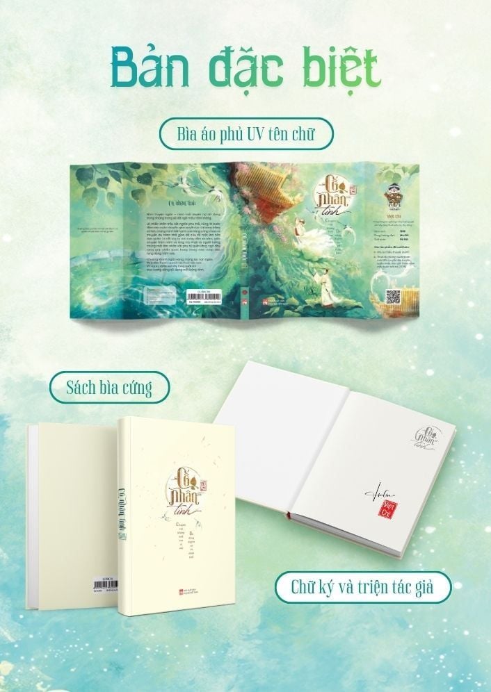 Hình thức: Bìa cứng áo ôm kèm chữ ký & triện tác giả, postcard, bookmark