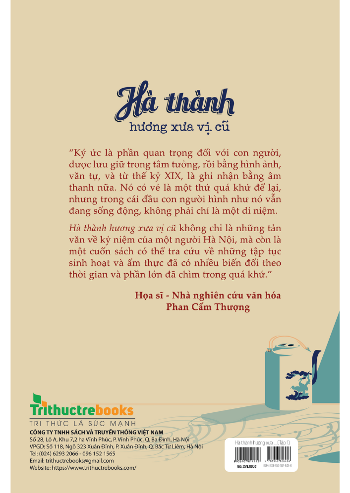 Bởi vậy mà họa sĩ - nhà nghiên cứu văn hóa Phan Cẩm Thượng đã dành những lời khen tặng trong bài bình cuối sách: “Hà thành hương xưa vị cũ không chỉ là những tản văn về kỷ niệm của một người Hà Nội, mà còn là một cuốn sách có thể tra cứu về những tập tục sinh hoạt và ẩm thực đã có nhiều biến đổi theo thời gian và phần lớn đã chìm vào quá khứ”.
