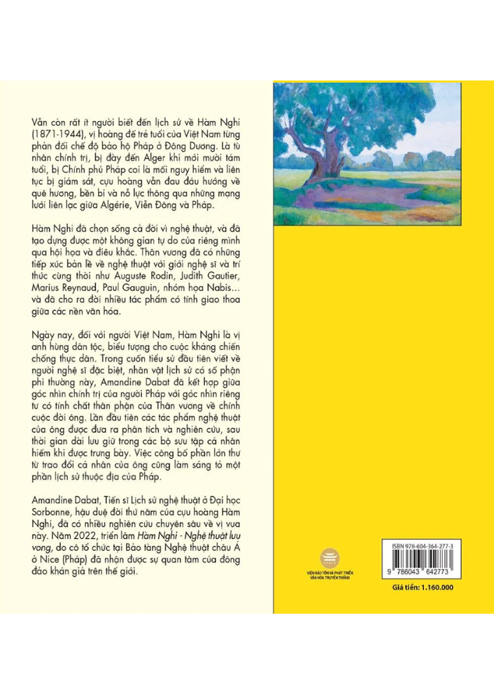 Với thân phận lưu đày, Hàm Nghi đã chọn sống cả đời vì nghệ thuật, và đã tạo dựng được một không gian tự do của riêng mình qua hội họa và điêu khắc. Thân vương đã có những tiếp xúc mang tính bản lề về nghệ thuật với giới nghệ sĩ và trí thức đương thời như Auguste Rodin, Judith Gautier, Marius Reynaud, Paul Gauguin, nhóm họa Nabis… và đã cho ra đời nhiều tác phẩm có tính giao thoa giữa các nền văn hóa. Cuốn sách này cho ta khám phá những tác phẩm hội họa, điêu khắc của Hàm Nghi, những khía cạnh nghệ thuật ít được biết đến của vị hoàng đế, một trong những nghệ sĩ để lại dấu ấn lớn trong nền mĩ thuật cận hiện đại của Việt Nam đầu thế kỉ 20.