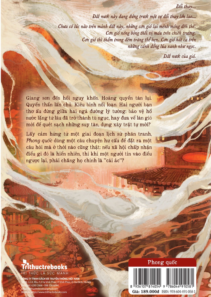 Phong quốc là câu chuyện về sự đối kháng giữa trật tự và hỗn loạn. Là câu chuyện về sự xung đột tư tưởng. Là những phận người chao đảo giữa dòng xoáy thời cuộc. Là câu hỏi về sự phải trái đúng sai muôn đời còn mãi.