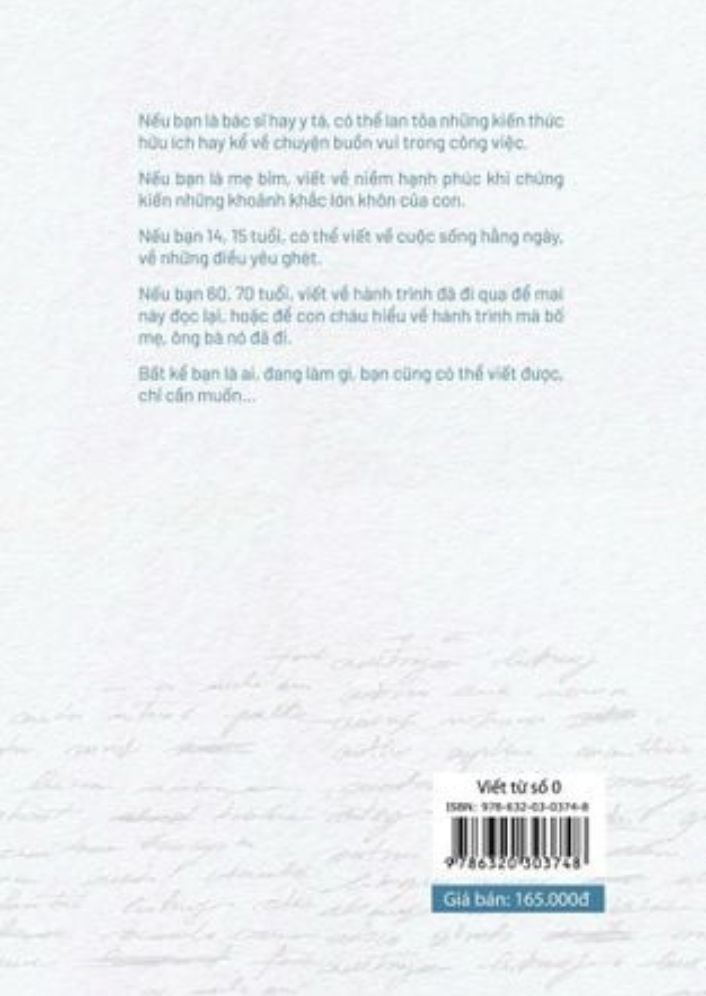 Nhiều người thường nghĩ, nếu không làm công việc liên quan đến viết, thì học viết để làm gì. Nhưng bạn có biết, trong cuộc sống ngày nay, có rất nhiều thứ cần đến viết. Chúng ta viết nhật ký hằng ngày, viết lời cảm ơn đến một ai đó, bày tỏ quan điểm về một vấn đề trong xã hội, viết email xin việc, viết báo cáo nộp cho cấp trên,... Tất cả đều cần đến viết. Đó là lý do tác giả Hải Dương viết cuốn sách Viết từ số 0.